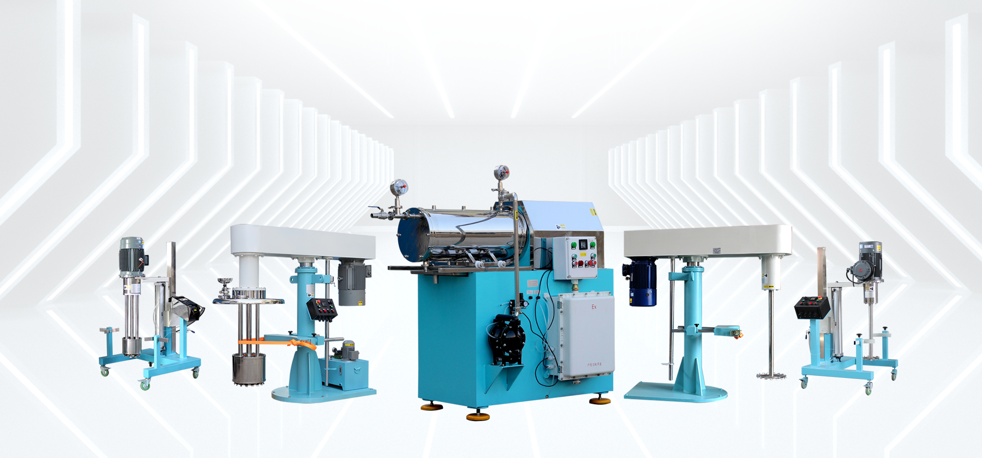 公司自主研发生产的设备包含:高速分散机,篮式研磨机,卧式研磨机,高剪切乳化机和乳化泵,定制搅拌机,灌装机和过滤器,精细化工流体成套设备,各类釜罐容器,以及各类实验室设备。目前公司服务的行业主要有涂料,油漆,油墨,色浆,染料,化妆品,食品,乳制品等等。