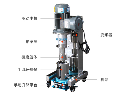 实验室篮式研磨机是针对科研机构和企事业单位研制的一款经济型湿法分散研磨设备。该设备可长时间运行,速度稳定且噪音小,并且分散和研磨两道生产工艺一机完成,从而在短时间内有效降低中低粘度物料的细度。