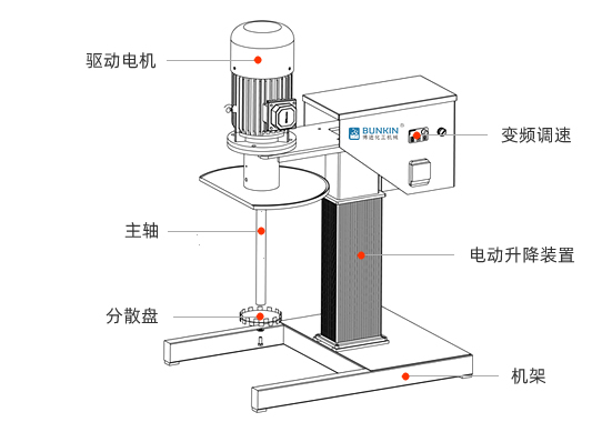 设备带有电动升降,噪音低能够快速升降和固定密封桶;分散盘采用内六角螺栓与主轴固定,能够方便快速拆卸更换,清洗容易;带有锁扣密封条装置,可以快速将密封桶固定。